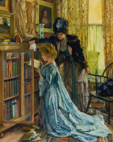 La lectrice peinte par Arthur Ignatius Keller serait-elle en train de faire de la place pour de nouveaux livres? À moins qu’elle ne se prépare à prêter quelques romans à son amie? À vous de nous dire ce que cette scène évoque pour vous. Nous nous réjouissons déjà de vous lire.